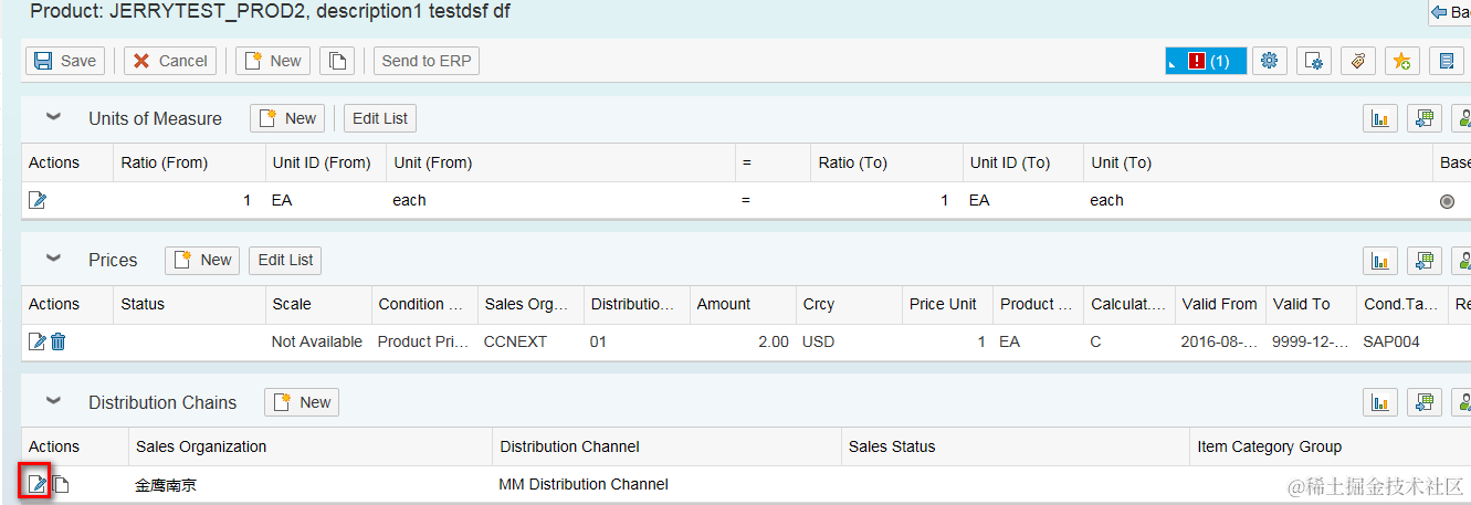 When I try to edit Distribution Chain for a given product by clicking edit icon: