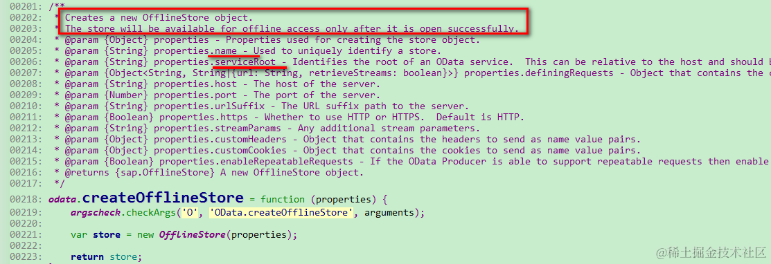 In the runtime, this json object will be passed as input parameter for OData offline store implemented by function createOfflineStore.