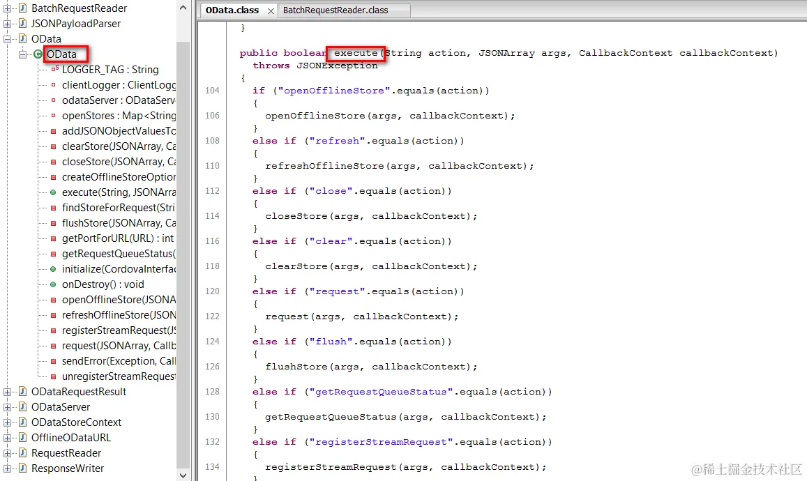 For example this is OData offline plugin service class, in its execute method we can find there are lots of IF-ELSE branch to implement different offline operation.