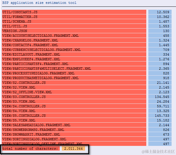 Today one of my colleague asks me whether there is some tool which can allow us to get a draft estimation on the size of a BSP application. As far as I know there is no such tool, so I write one by myself. This tool simply fetches source code of all artifacts belonging to a specified BSP application ( js, html, css etc ), accumulate the total number of characters returned by strlen().