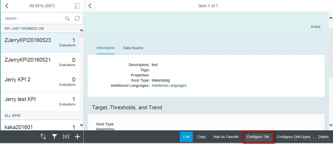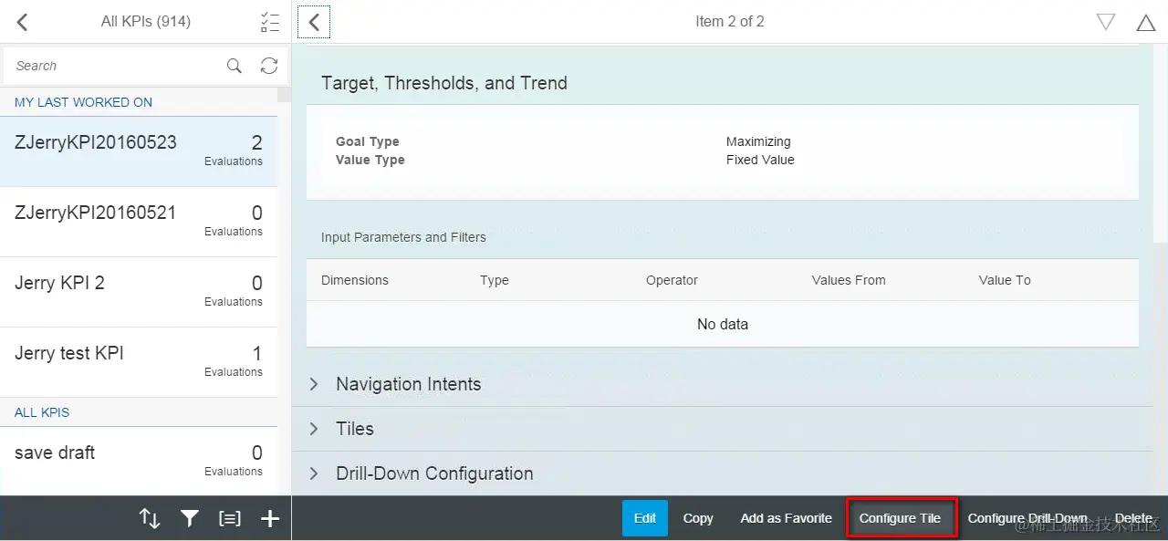 (2) Select evaluation and click button “Configure Tile”: