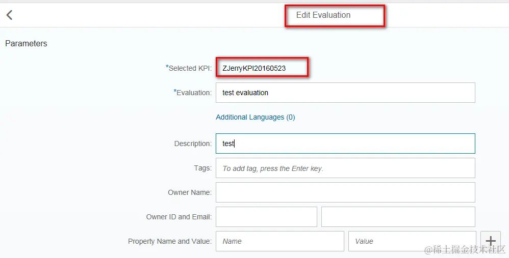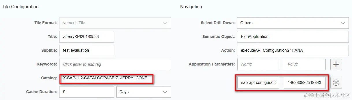 For Parameter, the name is sap-apf-configuration-id and the value is ..