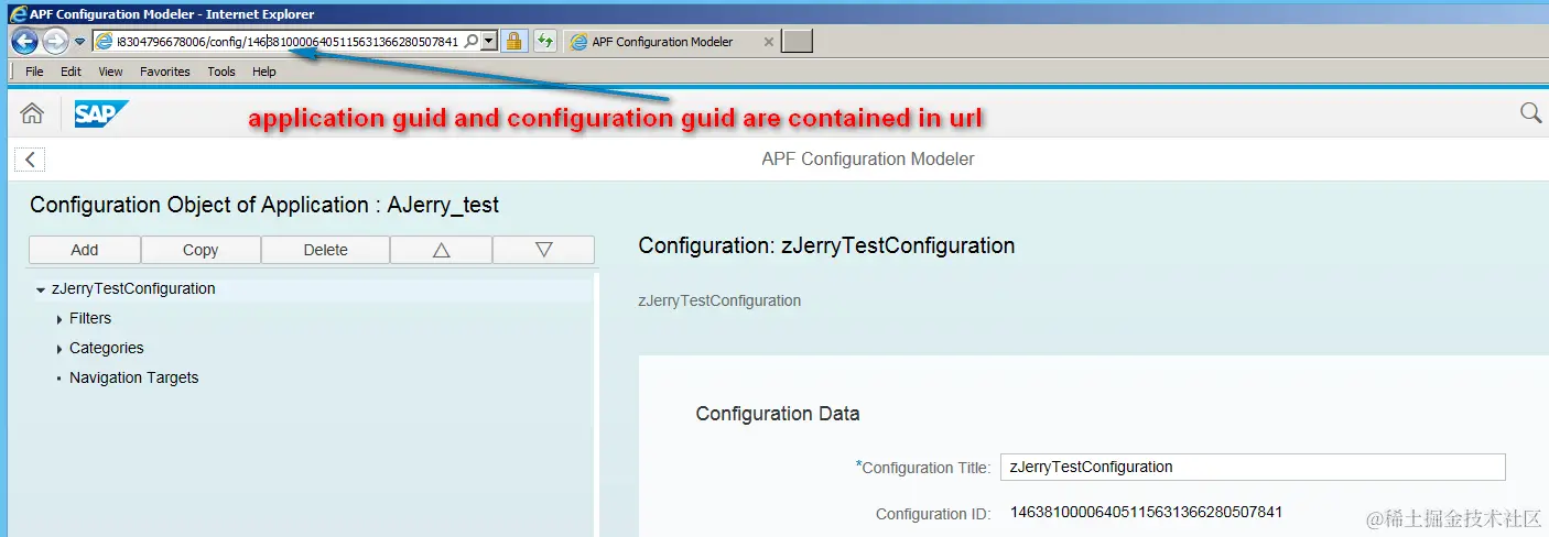 How to get application guid and configuration guid? Just open your application in APF Configuration modeller: