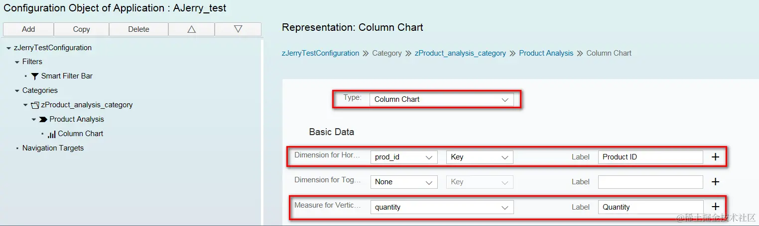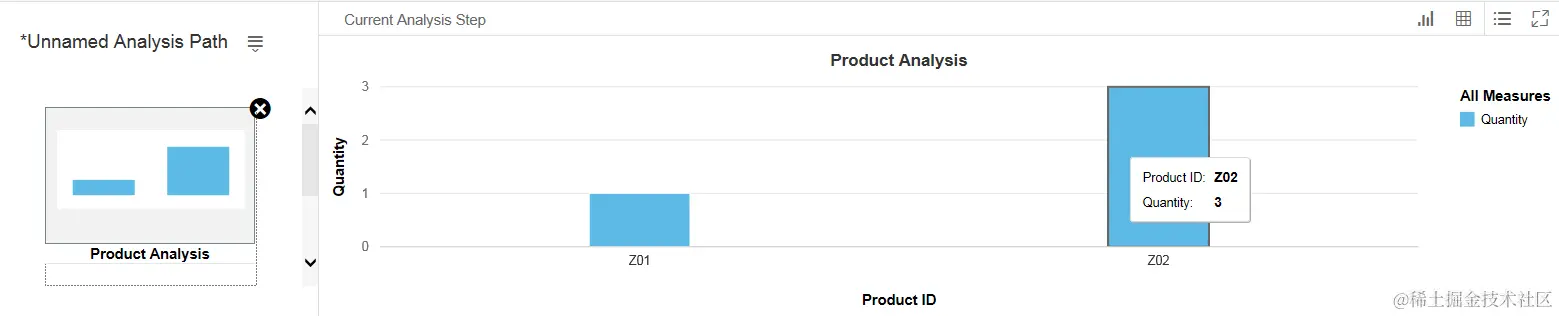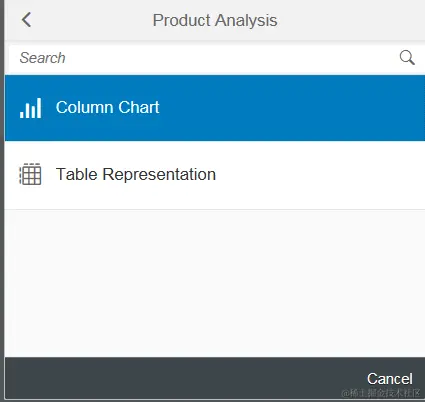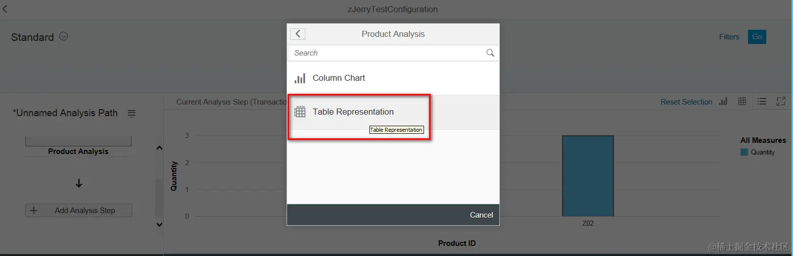 And then create a table representation which acts as drill down display, that is, when I click a certain product in column chart, I would like to have its detail information displayed by this table chart. Once saved, click Execute button to load the created application.
