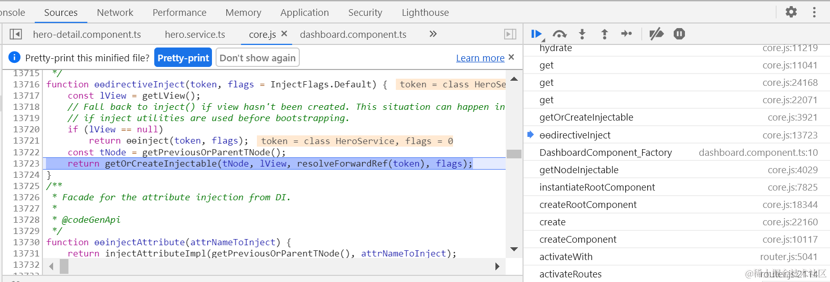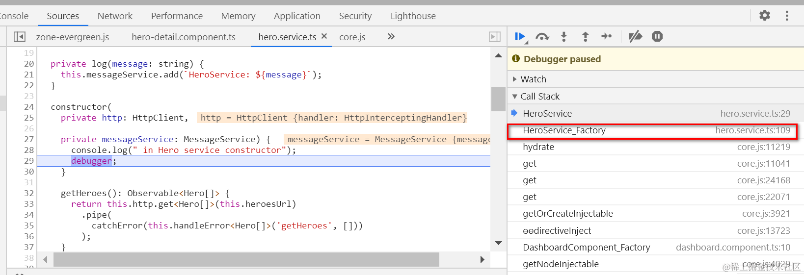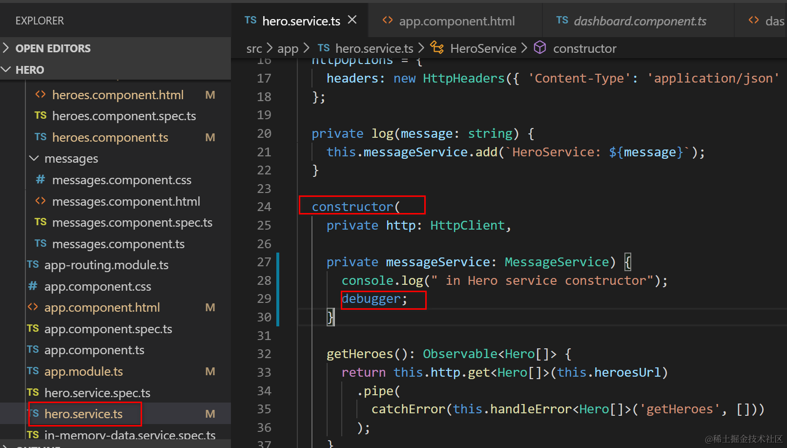 上下文:我实现了一个hero service,在其构造函数里添加了一些打印语句: