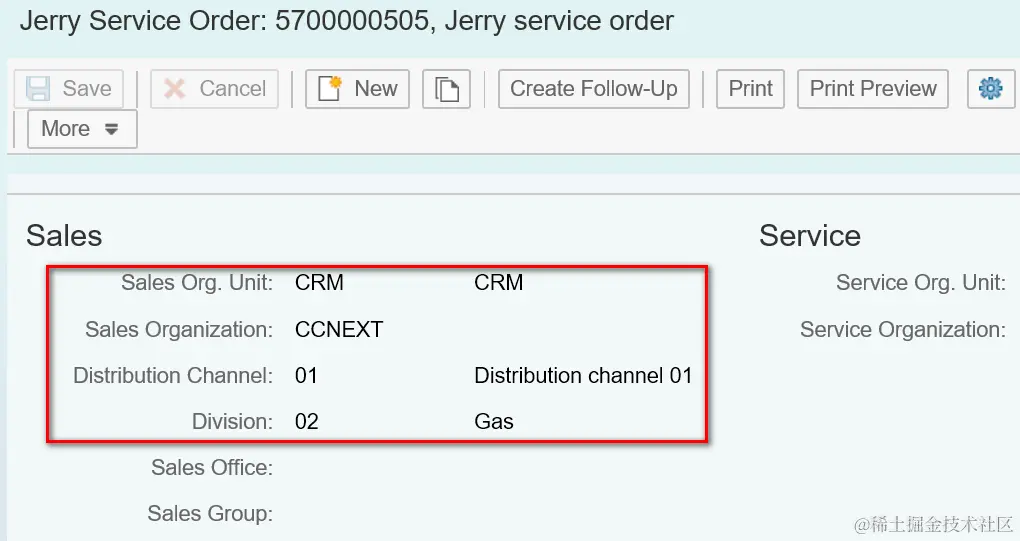 Standard behavior: I have maintained Organizational management data in Service Order Header:
