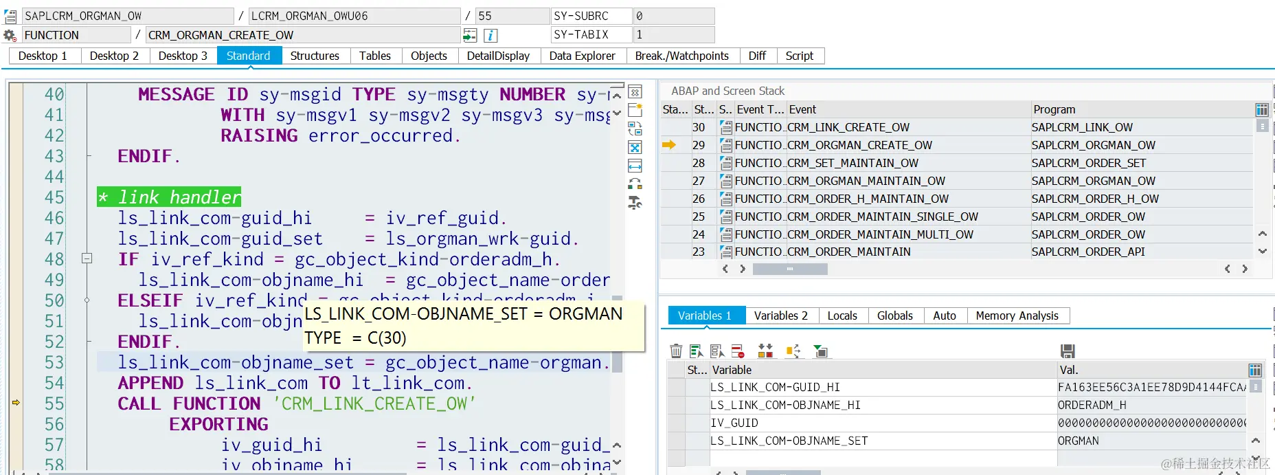 Once item is also saved successfully, we will have two records in CRMD_LINK, one links header with its organizational data and the other links item.