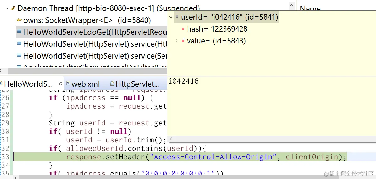 Now access the servlet with user id which is not included in the list, and the request fails: