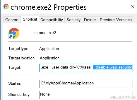 Create a new shortcut and add the argument –disable-web-security