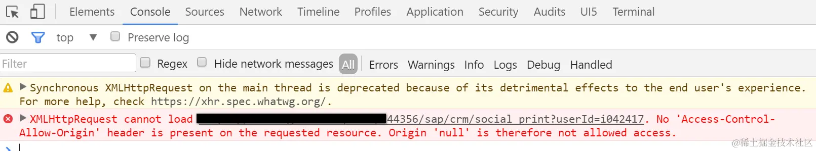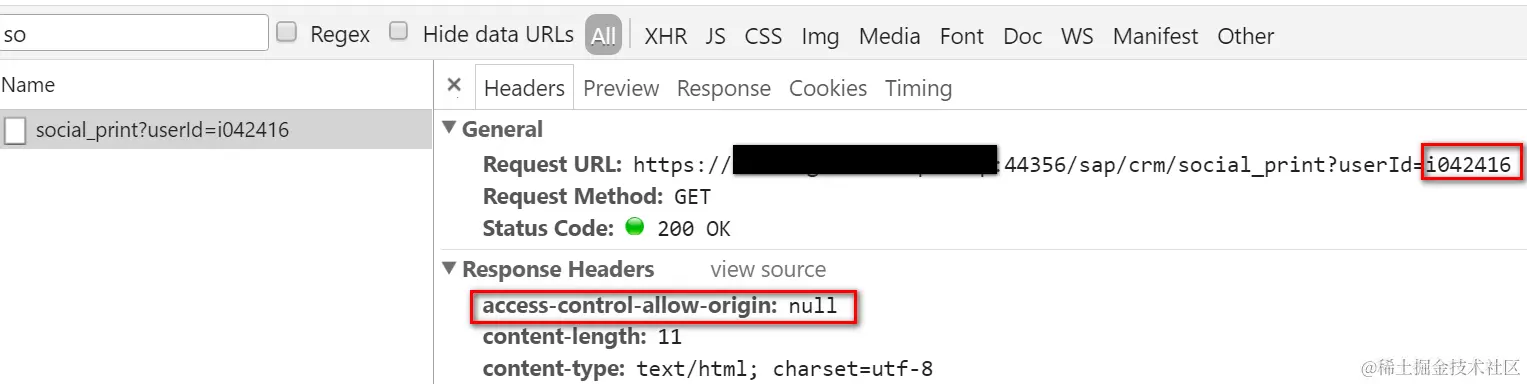 And when requesting the resource again but this time with a hard coded user id which acts a a simulation of white list, the request can be successfully processed this time thanks to CORS: