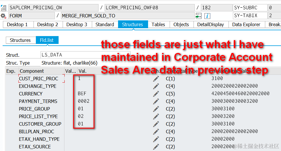 Later they are copied to pricing workarea field by field:
