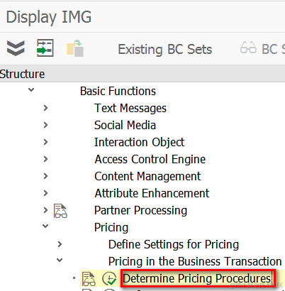 And in Pricing->Pricing in the Business Transaction->Determine Pricing Procedures, I maintain a corresponding determination procedure: