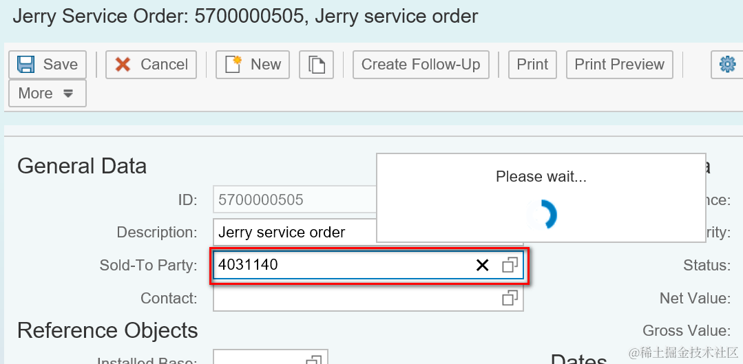 Once you saved the service order successfully,