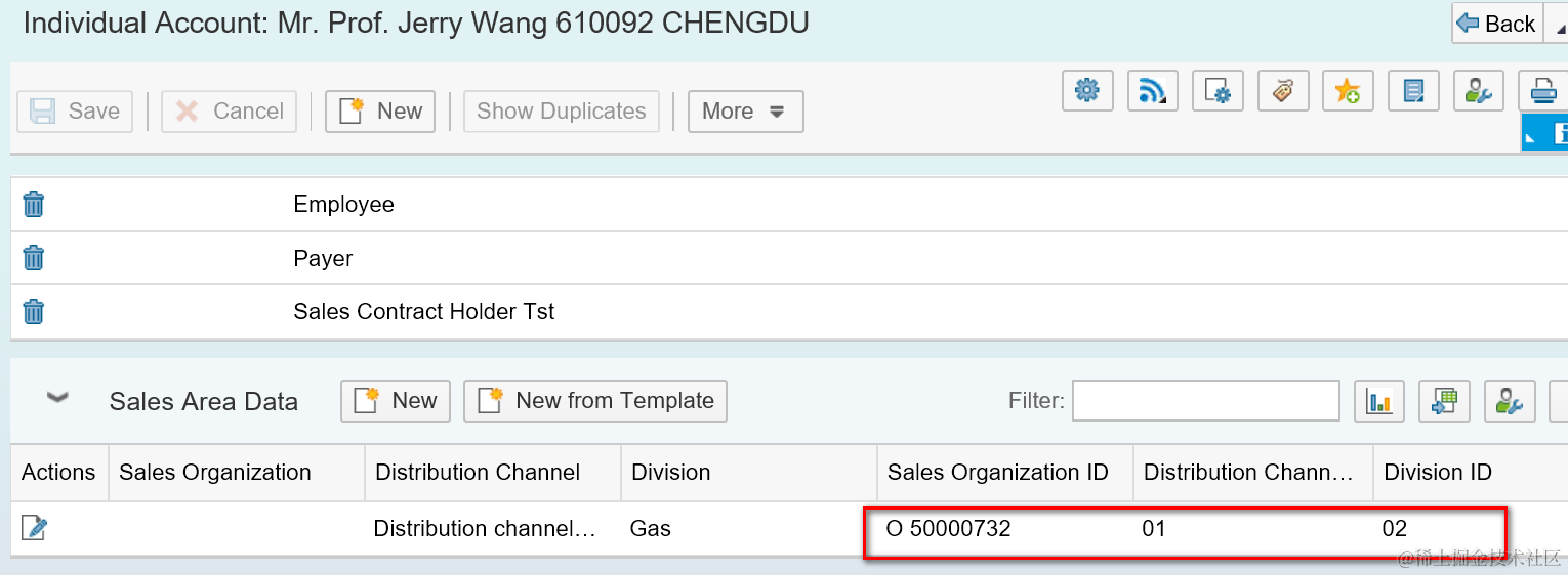 I have created a corporate account which is assigned to Sales Organization O 50000732, Distribution Channel 01, Division 02.