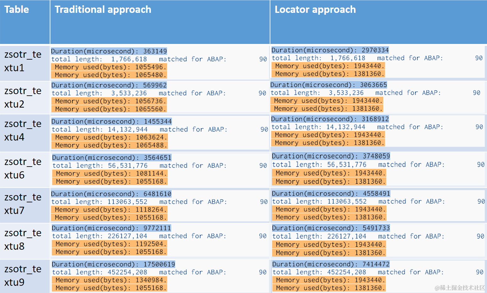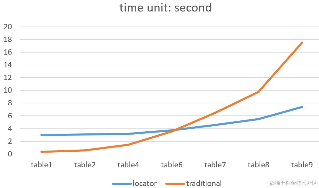 The comparison result clearly shows that the power of locator approach can only be released till a set of records which contain REALLY long String content as table column. If the content in String column is not long enough, it is not necessary to use locator approach. In real case it might take some effort to find this boundary value.