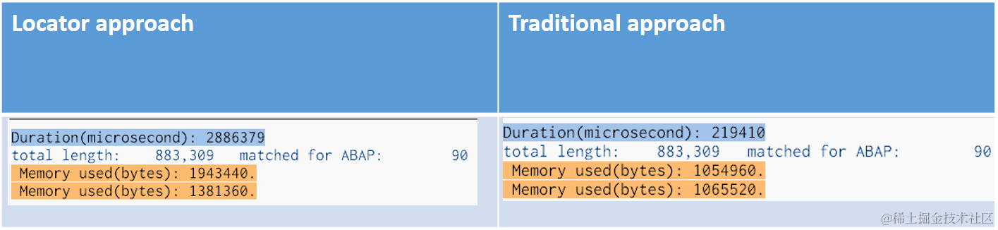 I compare the performance and memory consumption of both. The result shows traditional approach is 10 times faster and has less memory consumption than locator approach. So why do we need it at all?
