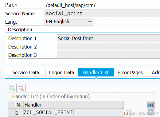 Create a new handler class ZCL_SOCIAL_PRINT for this node.