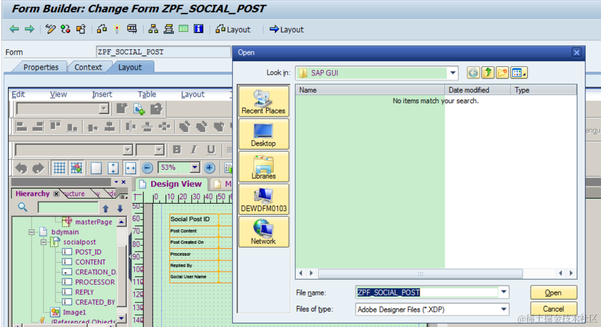 (5) Inside the handler class mentioned in step 4, an Adobe print form template ZPF_SOCIAL_POST is used.