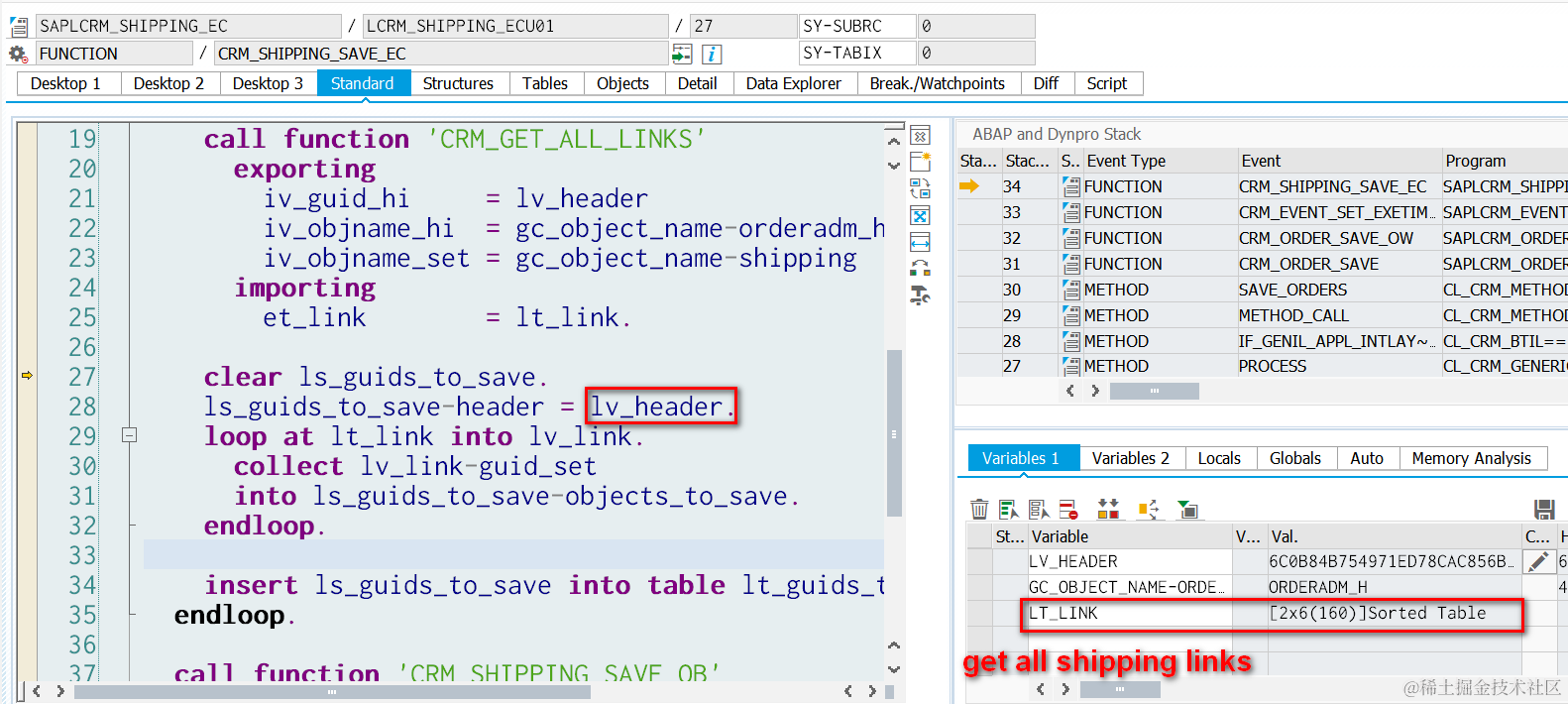 SELECT * INTO TABLE @DATA(lt_shipping_db) FROM crmd_shipping