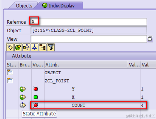 (2) double click, and you can see the attribute value is directly maintained in class ZCL_POINT, without any object instance created on top of it.