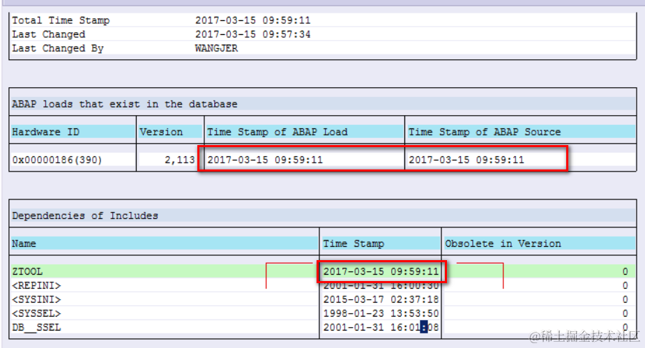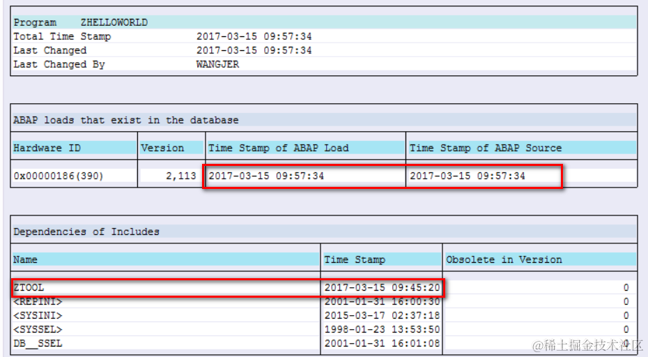 This time the timestamp of ZHELLOWORLD is also changed which equals exactly to the change timestamp of ZTOOL.