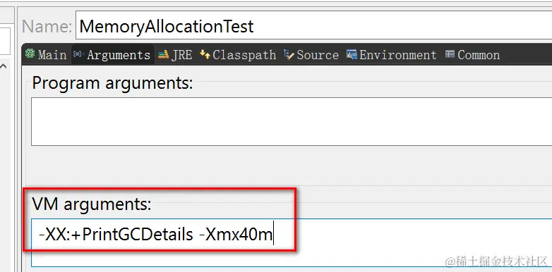 The option PrintGCDetails can print out GC execution detail and Xmx40m means the max allowed heap allocation size is 40MB.