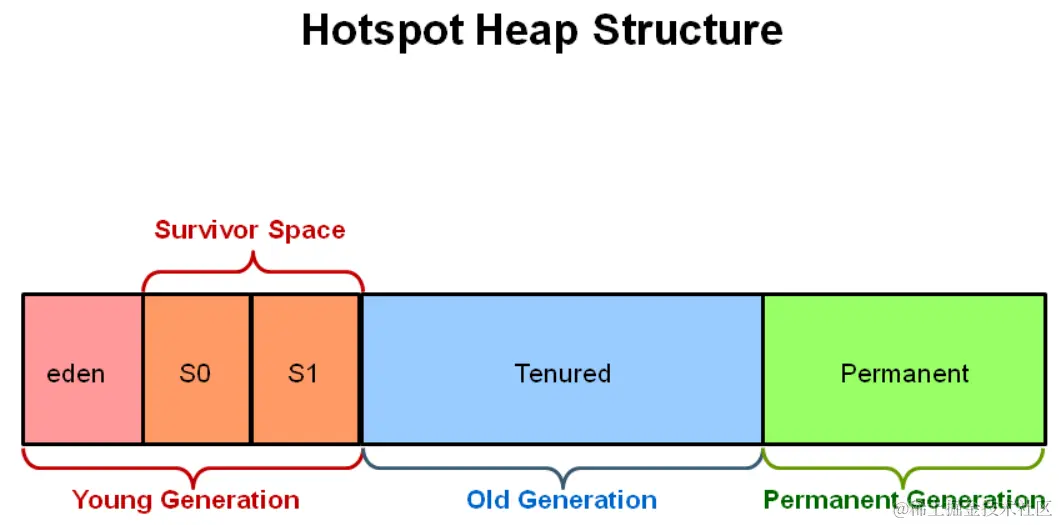 From Java official website we know the Heap in Hotspot( one kind of JVM ) consists of Young Generation, Old Generation and Permanent Generation.