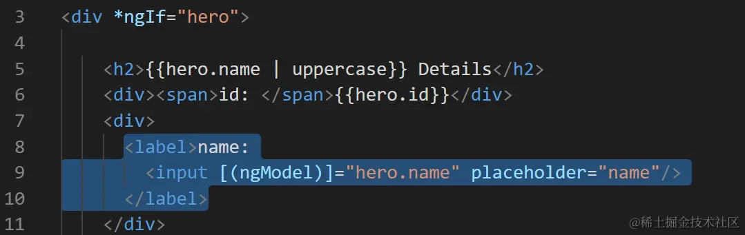 <input [(ngModel)]="hero.name" placeholder="name"/>