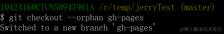 (2) use command git checkout –orphan gh-pages to create a new branch named “gh-pages”.