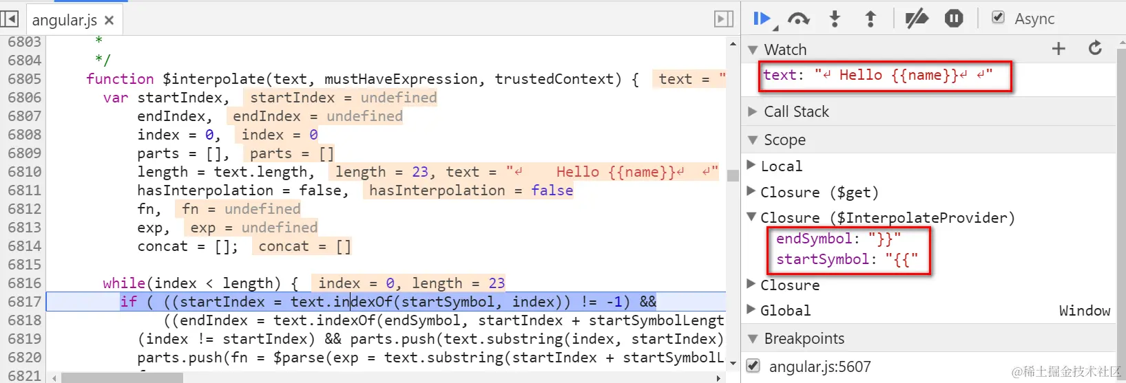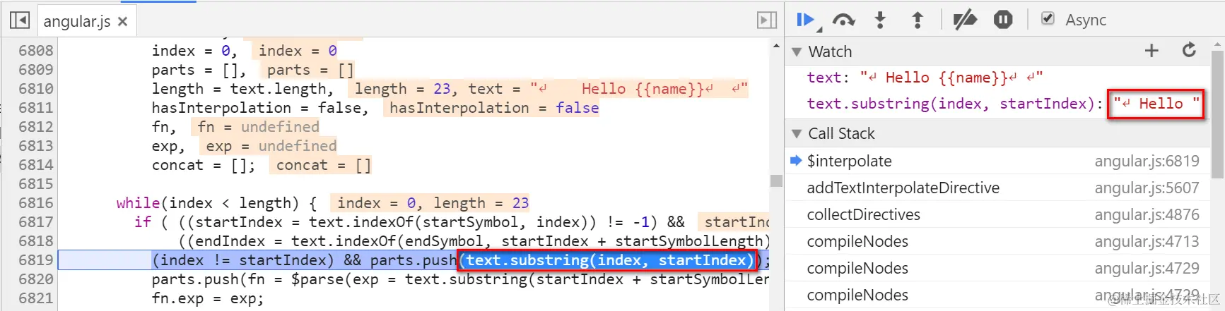 The parse of “Hello {{name}}” itself is done by Angular as well: