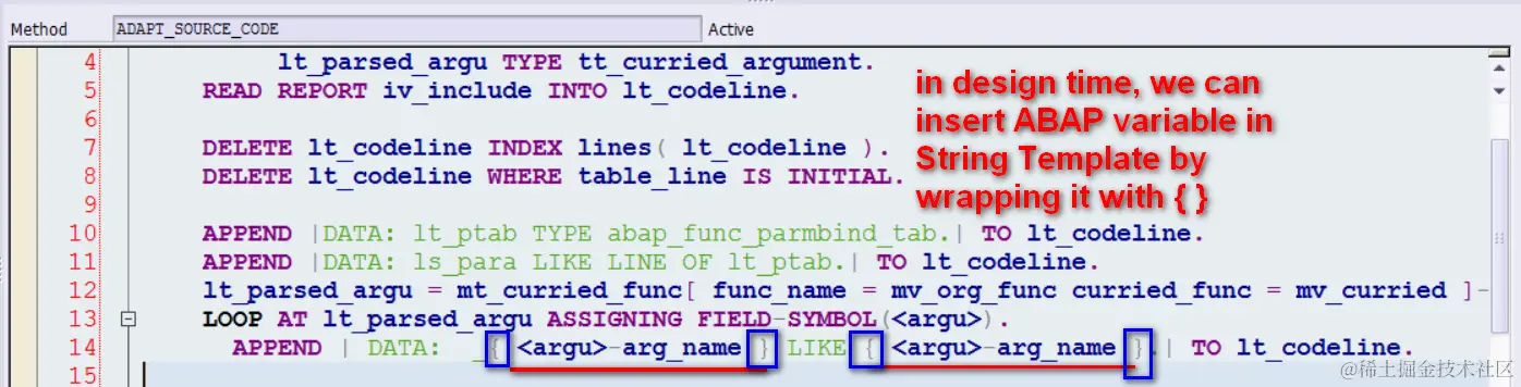 In the runtime, ABAP will replace the String Template content with actual value stored in that variable. This functionality is especially useful when you need to populate string dynamically based on some ABAP variable, for example you need to create some ABAP class or function module whose signature is only known in the runtime specified by consumer.