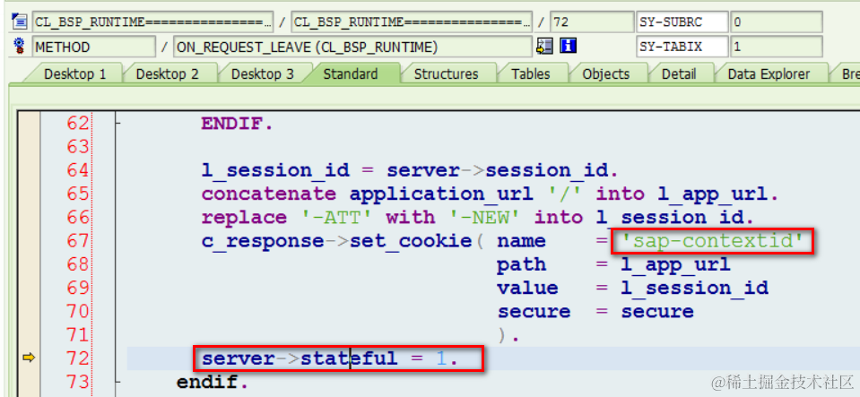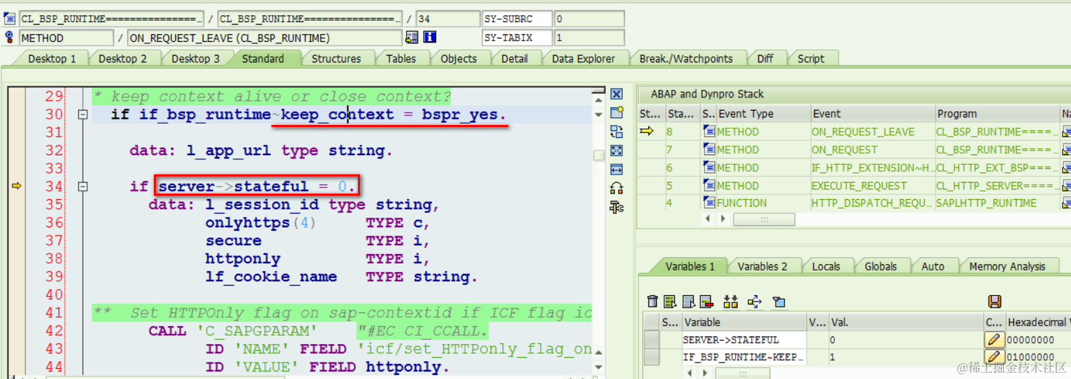 Here cookie field sap-contextid is set, and server->stateful is set as 1. This flag will be evaluated in the last step.