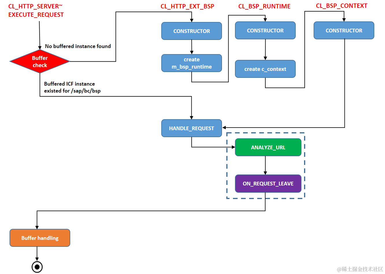 Once BSP handler CL_HTTP_EXT_BSP is initialized, its method HANDLE_REQUEST is called. Inside this method, method ANALYZE_URL ( green block in diagram ) of CL_BSP_RUNTIME is called to evaluate the accessed BSP application is stateful or stateless.