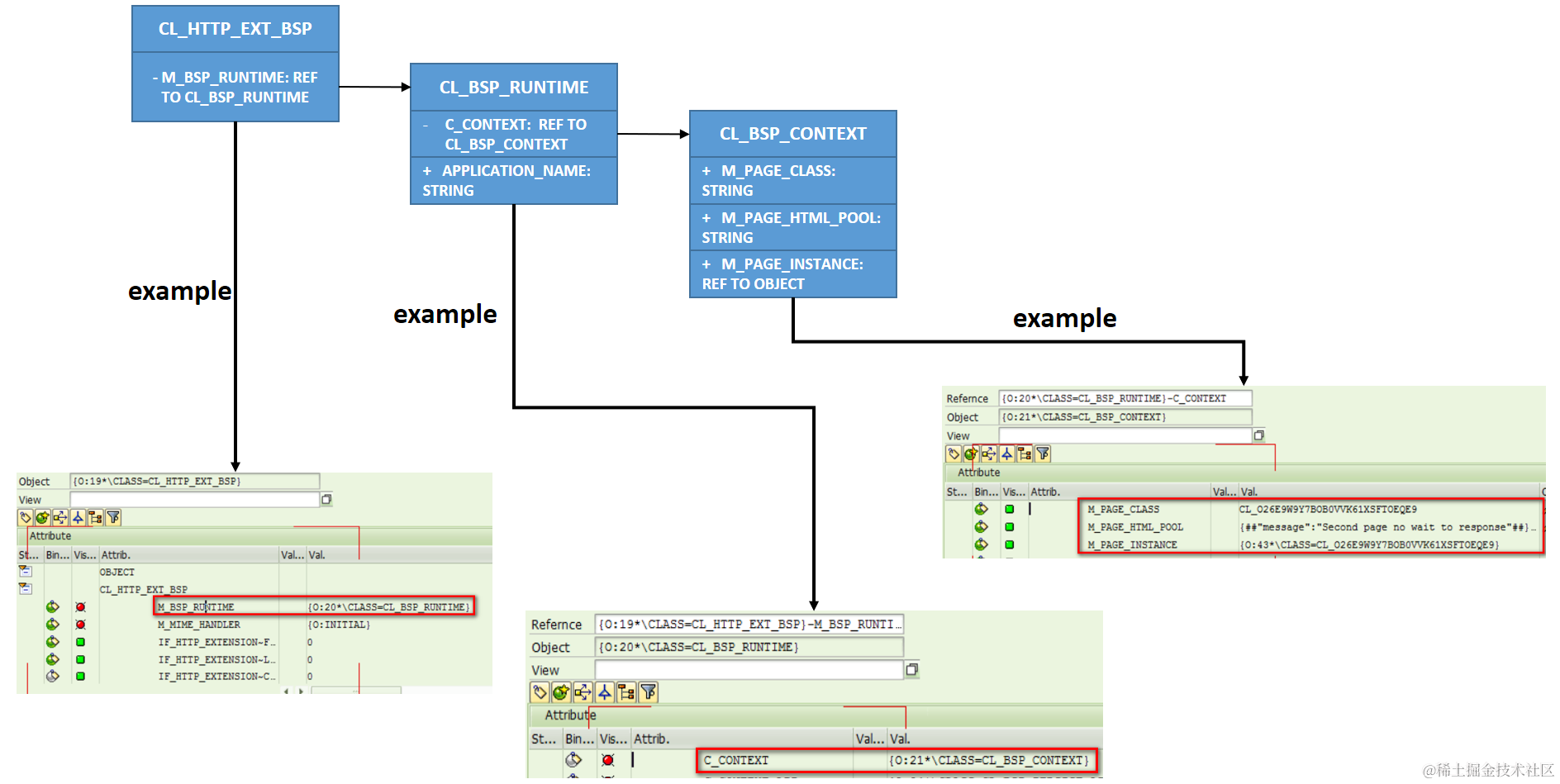 The relationship among CL_HTTP_EXT_BSP, CL_BSP_RUNTIME, CL_BSP_CONTEXT could be found from below picture: