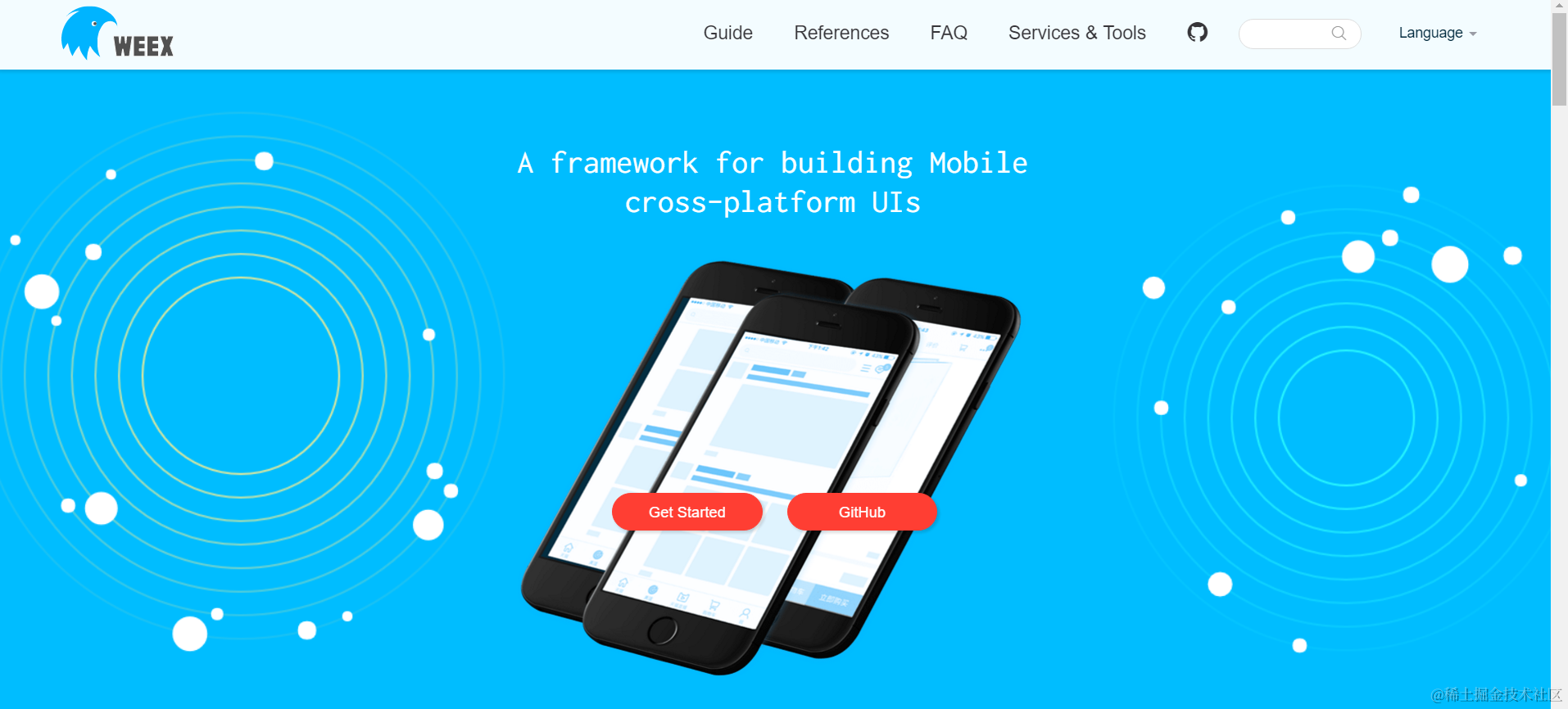 (2) Use Weex ( A framework for building Mobile cross-platform UI, more than 13000 stars in GitHub ), frontend developers can now program with simple syntax to build JavaScript application which has almost the same performance and UX as native application.Its slogan is “Write once, run everywhere”.