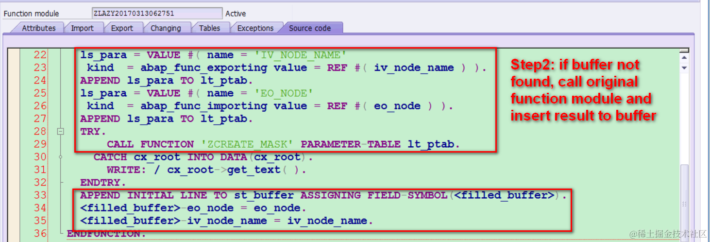 The new function module has exactly the same signature as ZCREATE_MASK. When it is called, we can observed that the singleton is fulfilled.