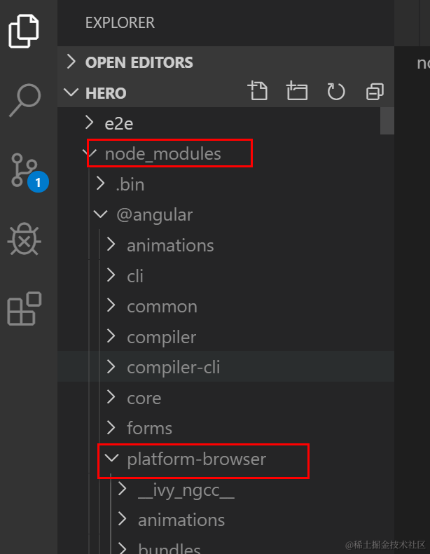展开node_modules文件夹下面的@angular, 打开platform-browser文件夹,