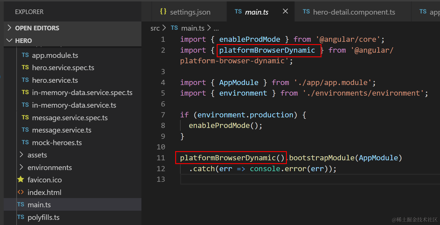 查看每个Angular应用的入口文件main.ts, 正是从@angular/platform-browser-dynamic里导出一个platformBrowserDynamic函数,再使用该函数引导AppModule: