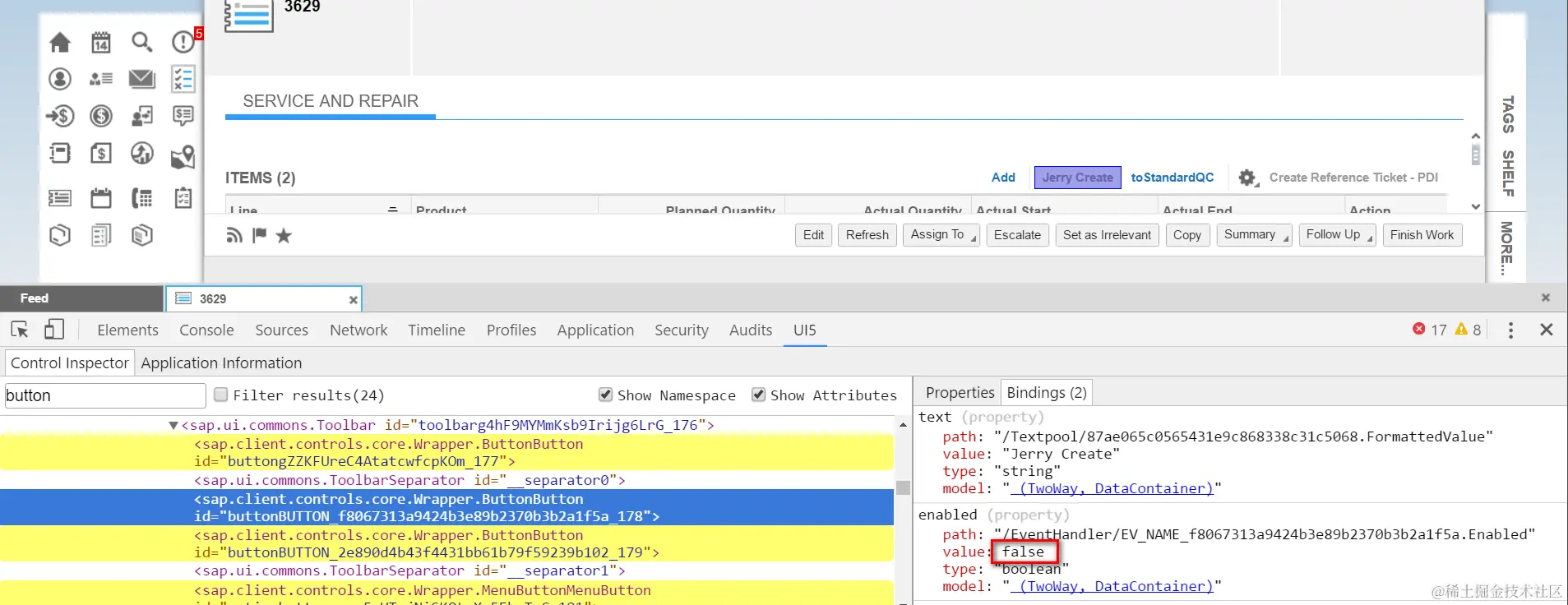 (3) Now we need to figure out why data model field for “Jerry Create” button is determined as false in the runtime.