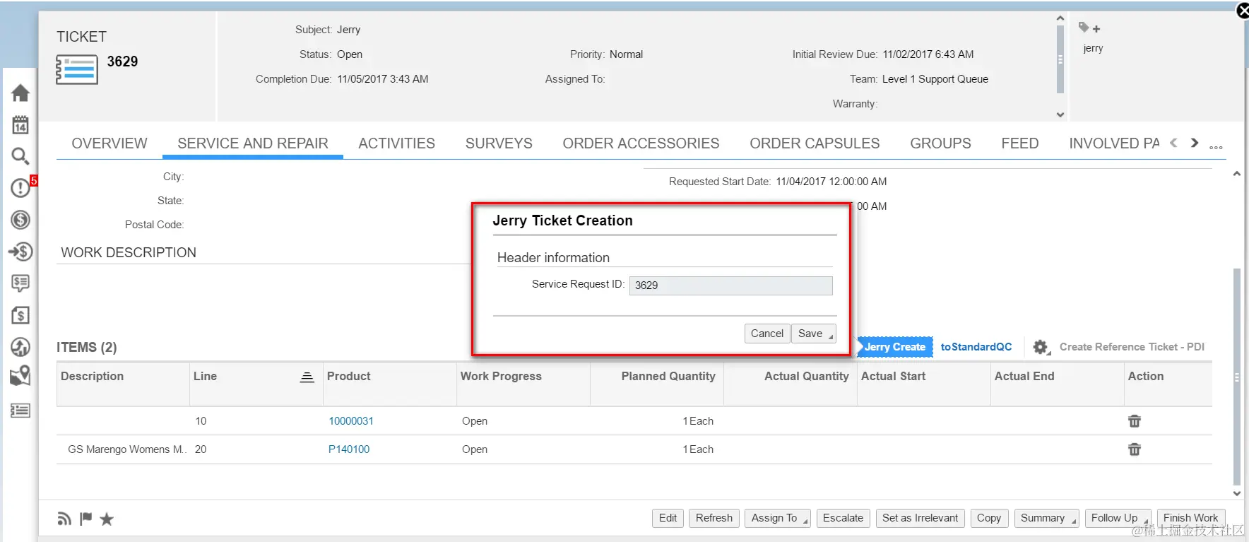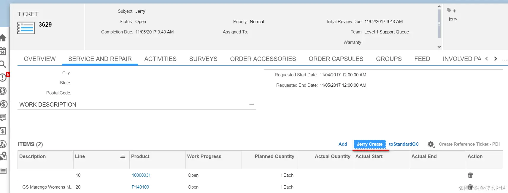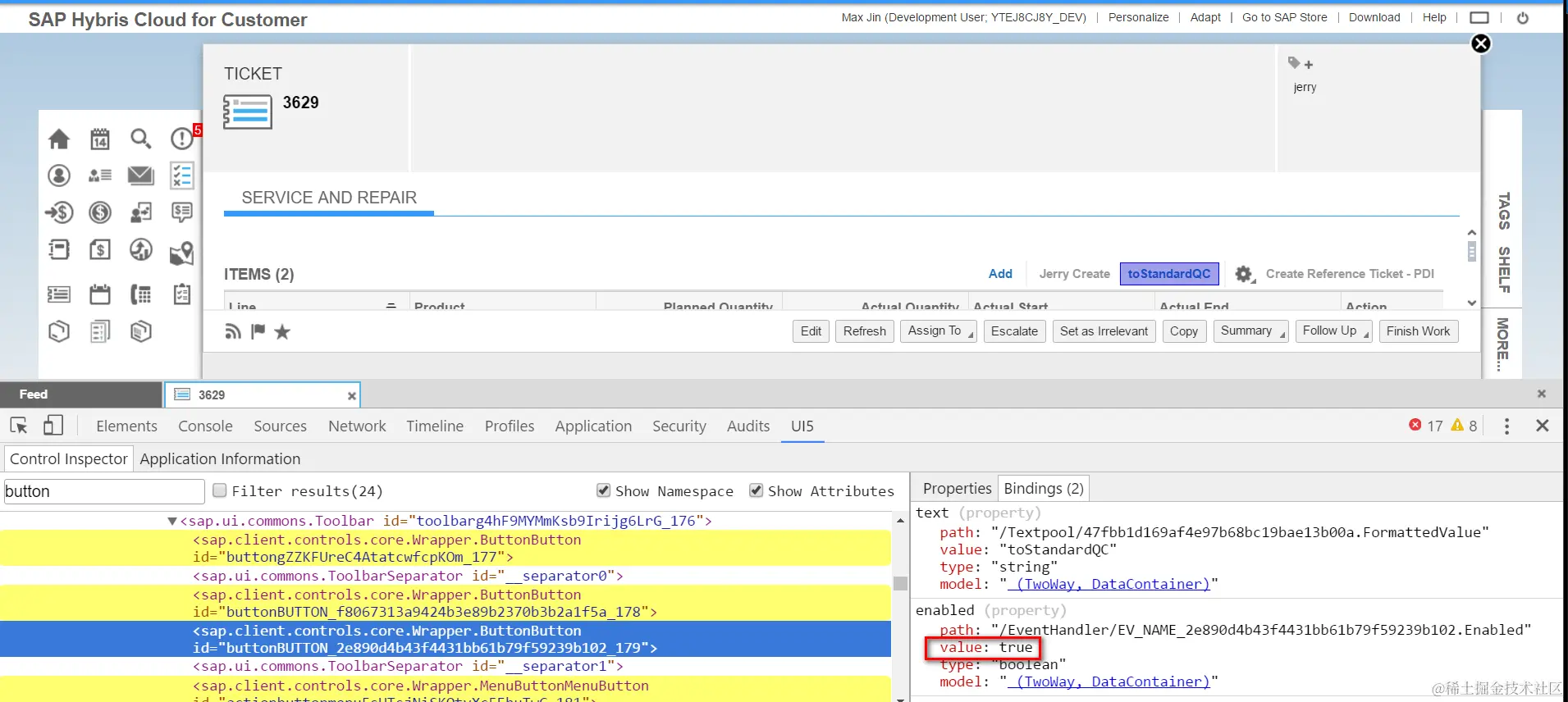 I have created two OBN button in Service Request TI item table’s toolbar via extensibility explorer.