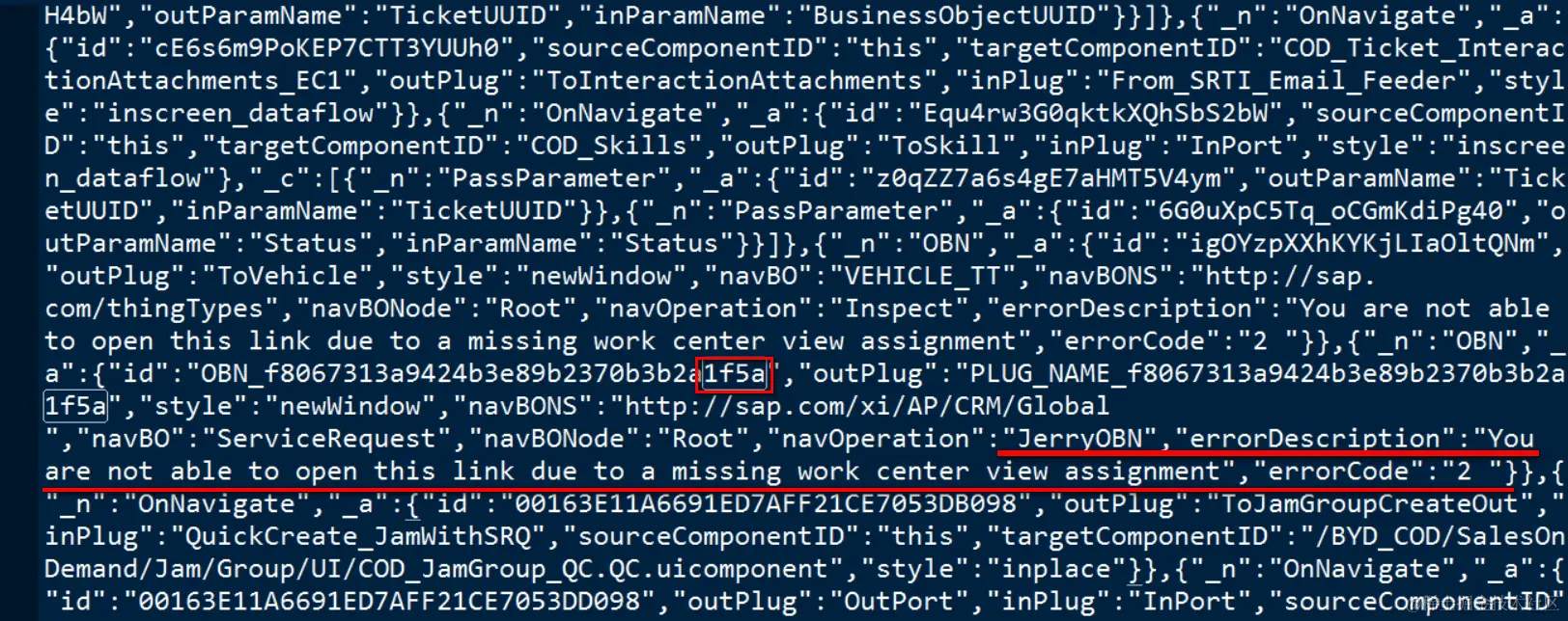 In Chrome development tool, check the HTTP response for ServiceRequest TI page. Search the response by keyword “1f5a”: