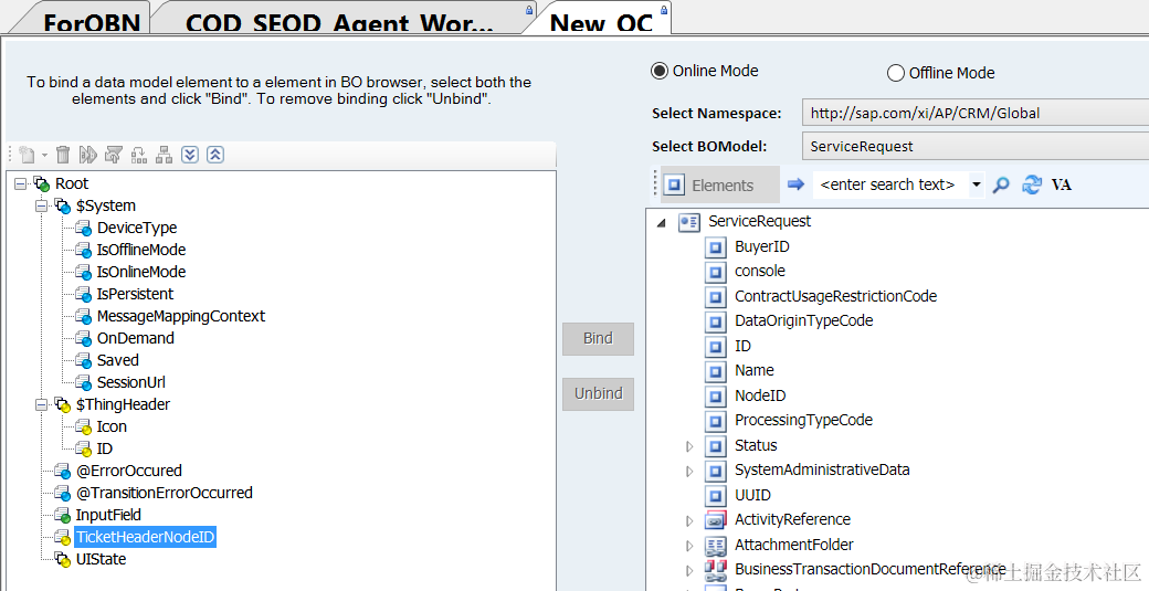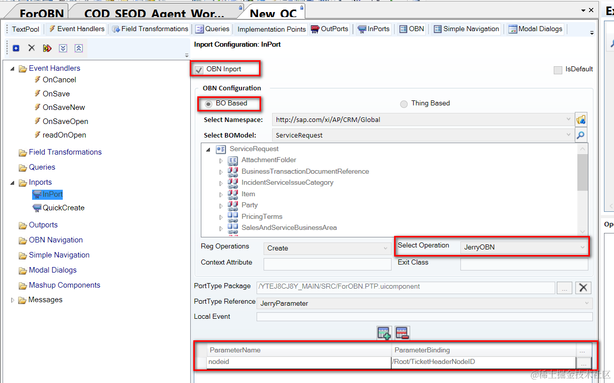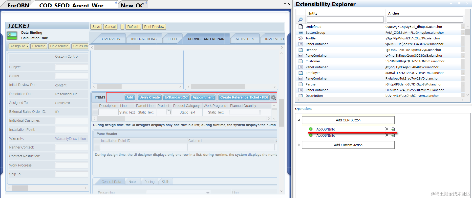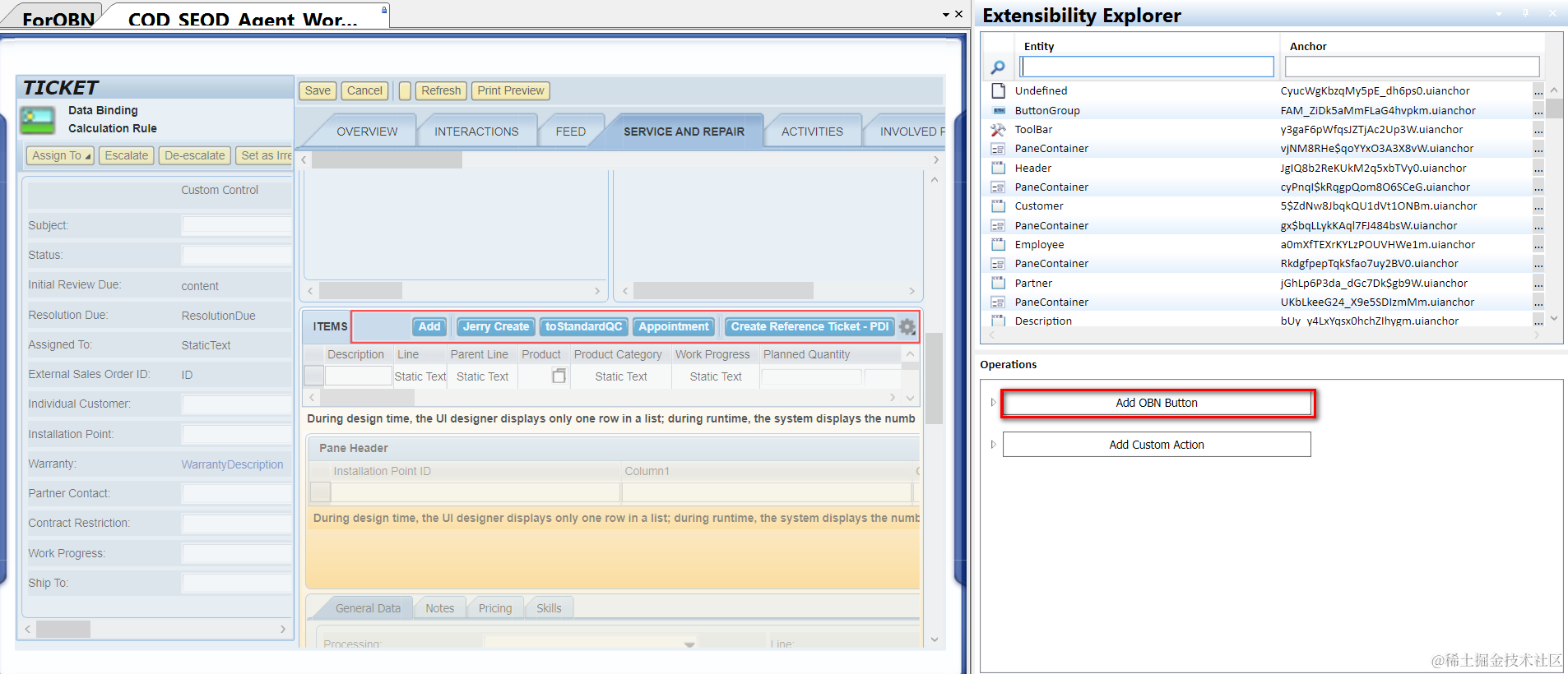 (3) In Service Request TI, create a new OBN button in extensibility explorer: