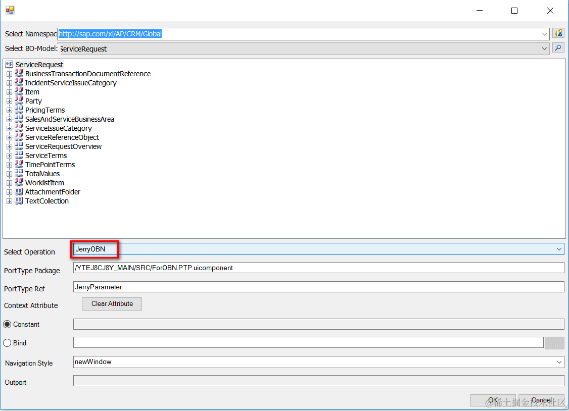 Since in previous step I have already assigned a custom operation “JerryOBN” to BO Service Request, so now it is available to use from drop down list of “Select Operation”: