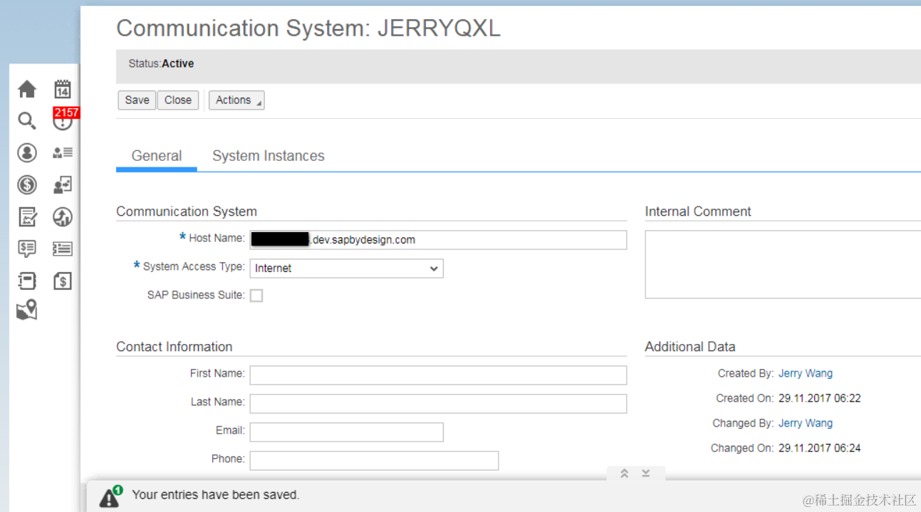 (1) Create a new Communication System and set its status to Active:
