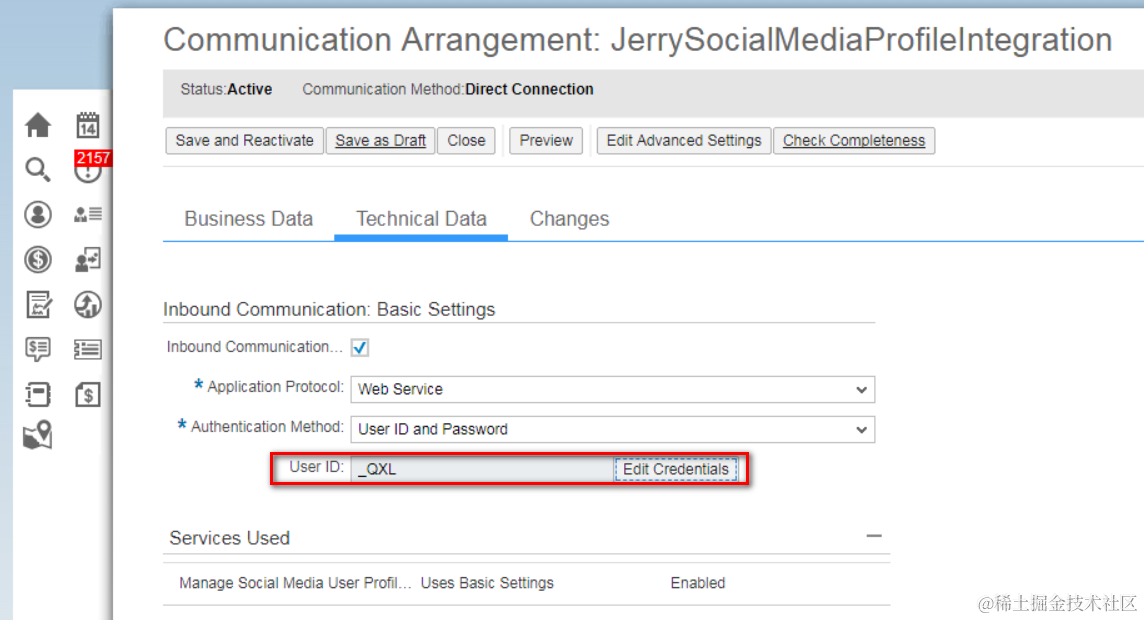 Press button “New Configuration” to create a new Communication arrangement based on this scenario. In Technical Data setting tab for this arrangement, edit the password for this automatically specified user: _QXL.