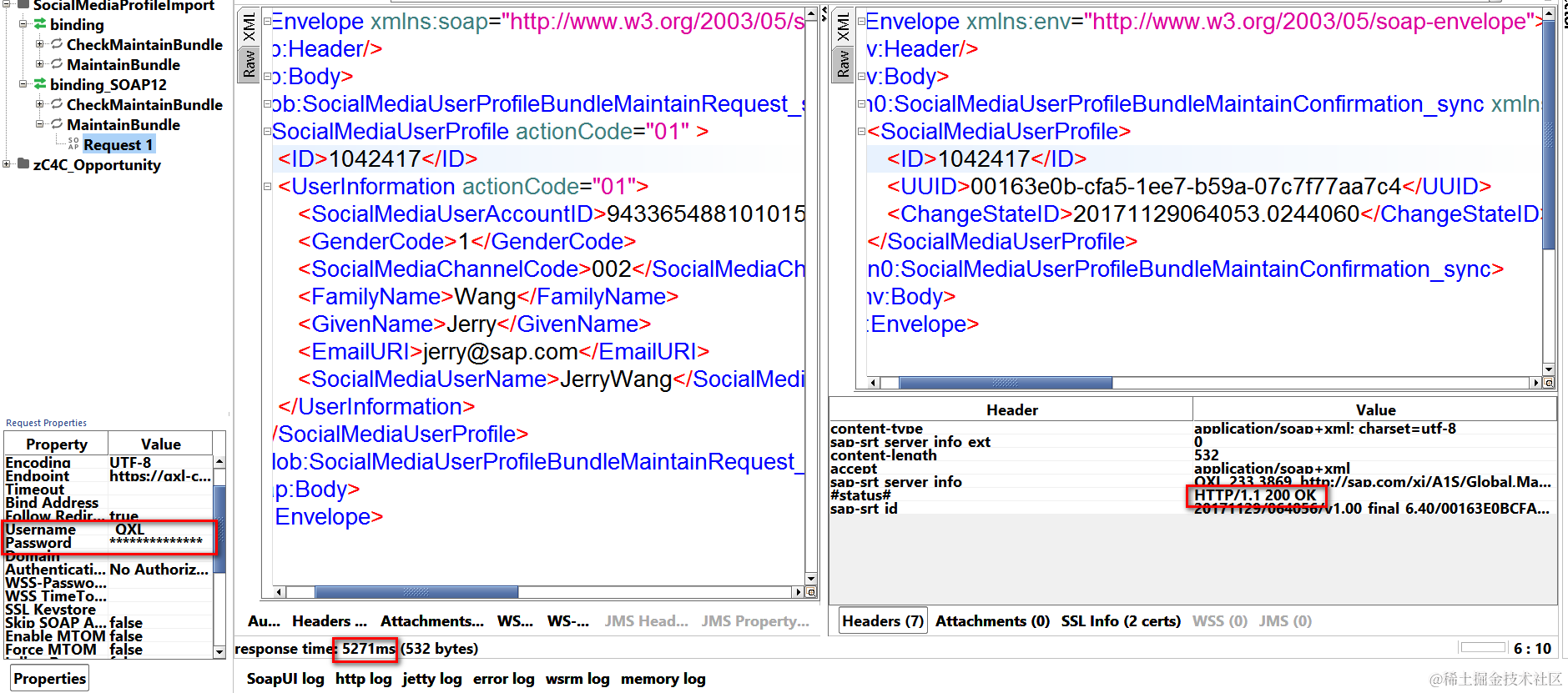 Now maintain this user and password in SoapUI instead and web service could be successfully consumed: