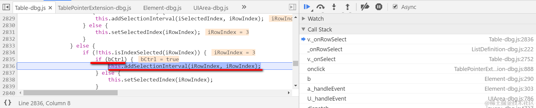 Set a breakpoint on function OnClick of file TablePointerExtension.js, and there is one attribute ctrlKey in the native HTML event object which indicates whether the Ctrl key is pressed in current event.