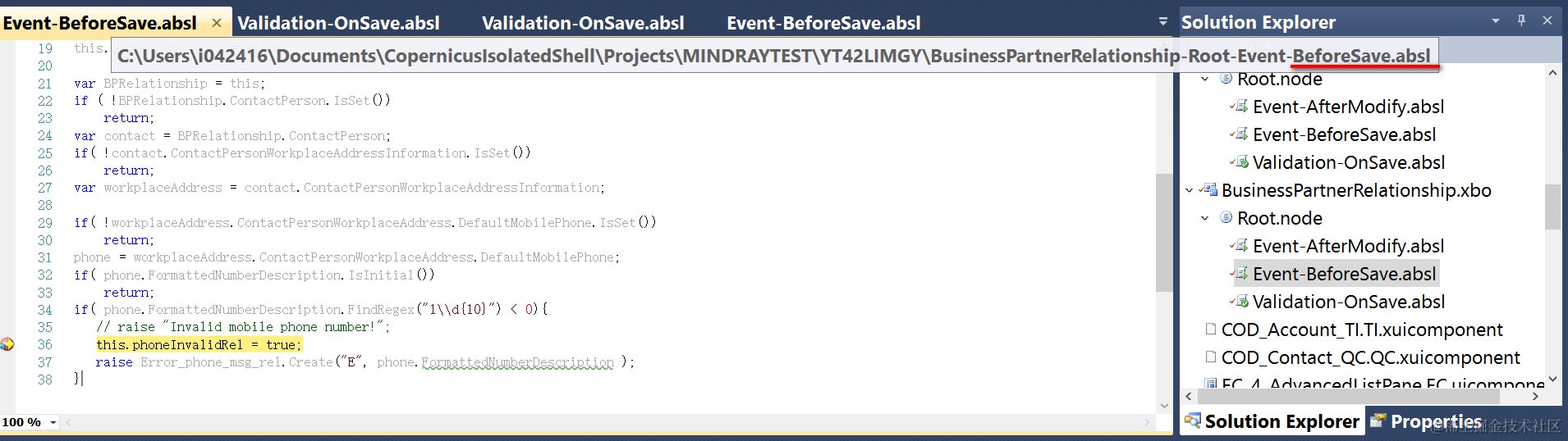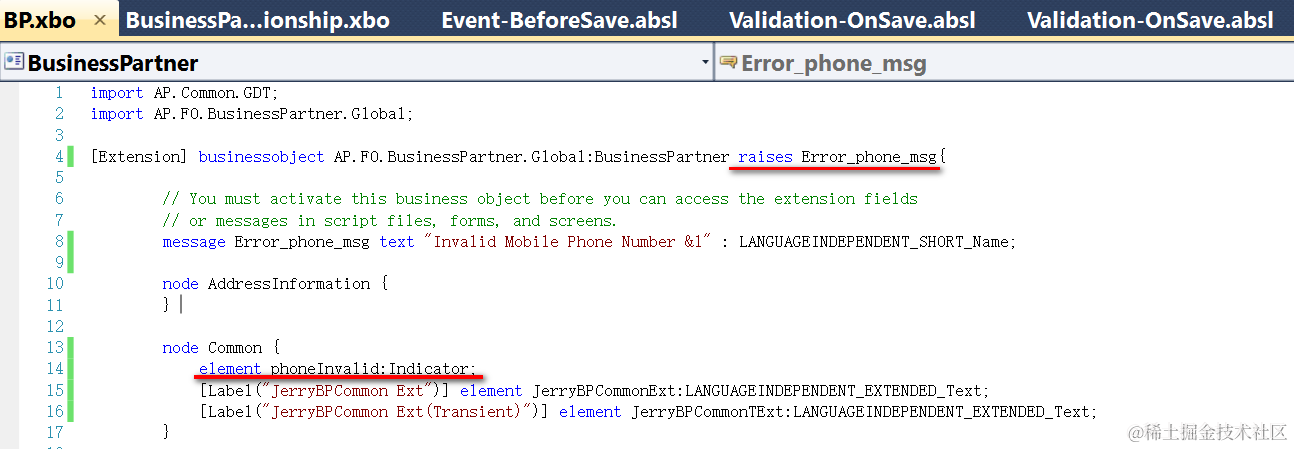 The above implementation could only cover the scenario that end user directly changes the mobile phone number which is technically modelled in BO BusinessPartnerRelationship. There is another possibility that end user will also changes the field on Root node of BO BusinessPartner, as a result the same logic should be done again on BO BusinessPartner as well.