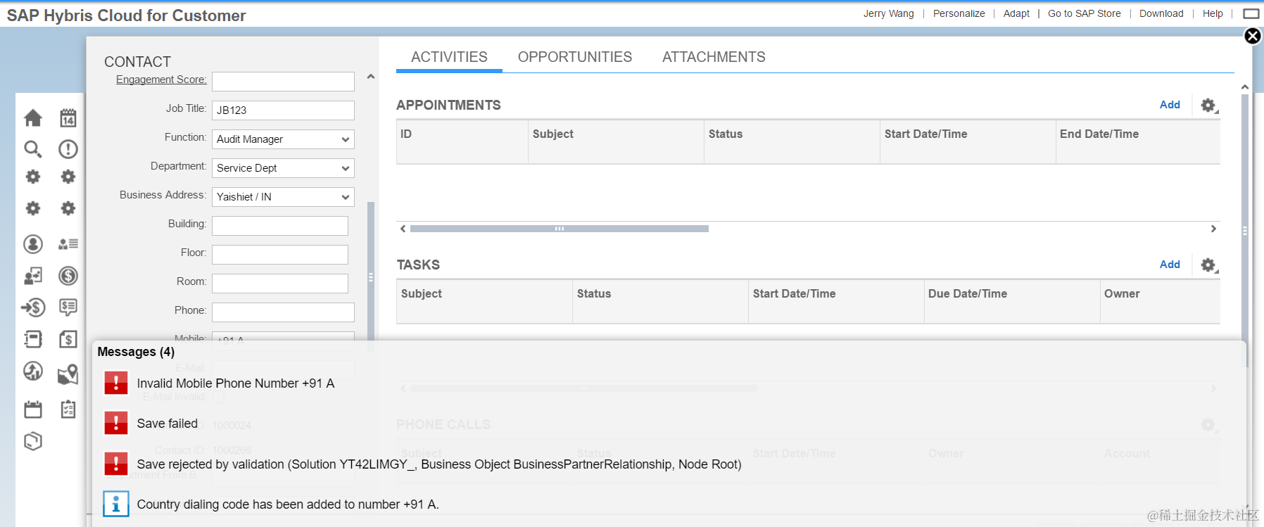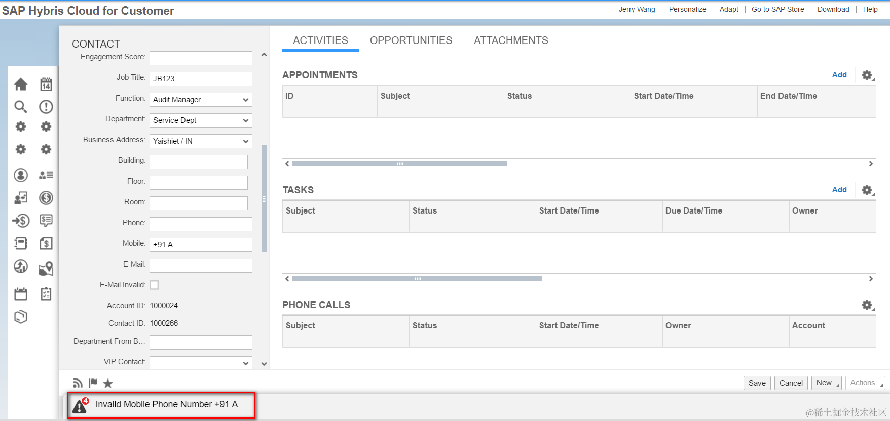 However, at least in China, a valid mobile phone number only consists of pure numeric values. The requirement of local customer is whenever the value other than pure number is maintained, the error message will be popped up and the save is terminated.