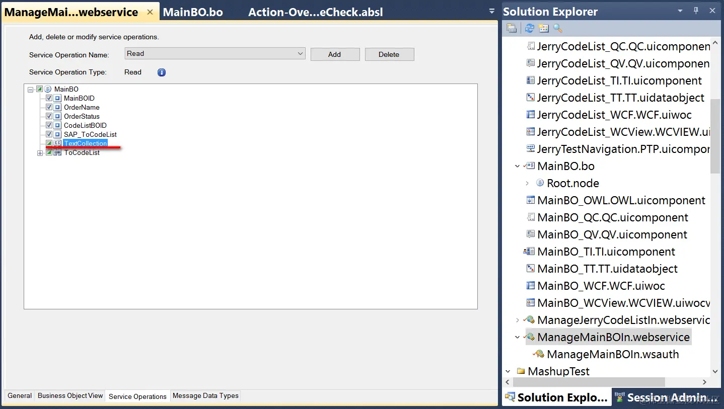 (1) Declare TextCollection as a dependent object of your custom BO: